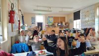 Au fil de la semaine, ils ont aussi appris à signer en Langue des Signes Française (LSF). Ils ont travaillé sur quelques mots et expressions basiques : saluer, dire merci, s’excuser, aimer, ne pas aimer... Pour signer, les élèves se sont présentés tour à tour aux autres en signant leur prénom.